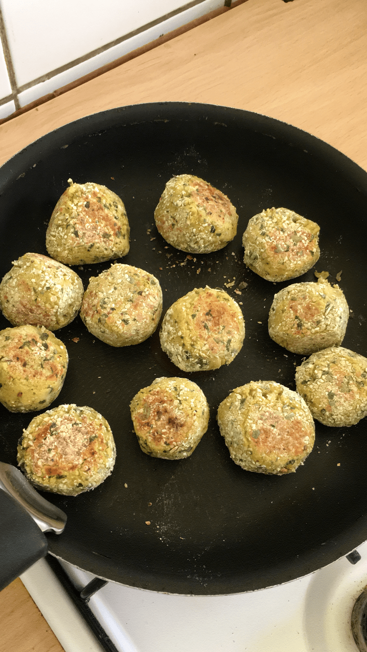 2/ Une fois le tout mélanger, formez des boules avec vos mains puis disposez celles-ci sur une plaque de cuisson. Écraser les boules à l’aide d’une cuillère/spatule et laisser cuire environ 10/15 minutes à 180 degrés.